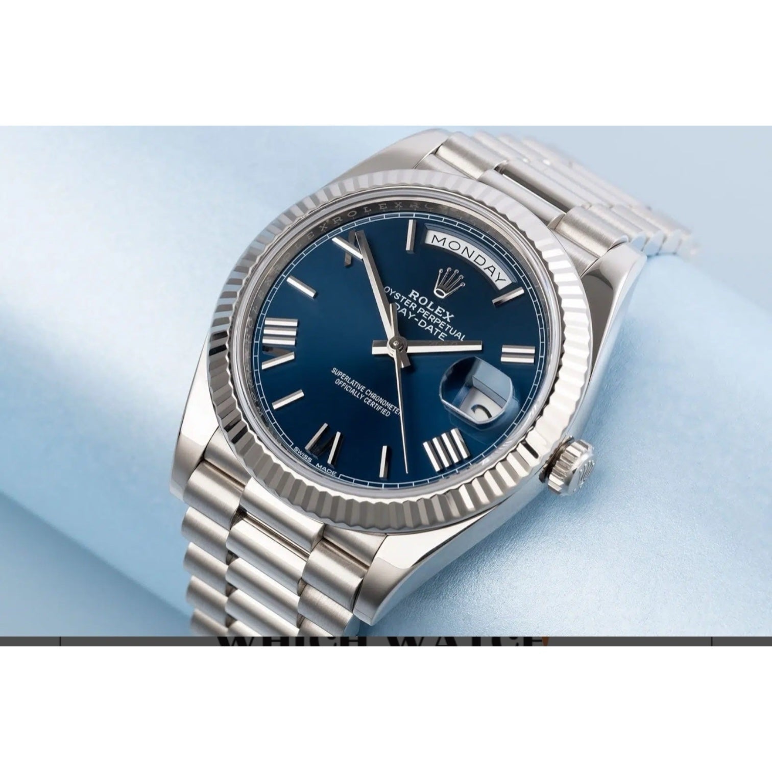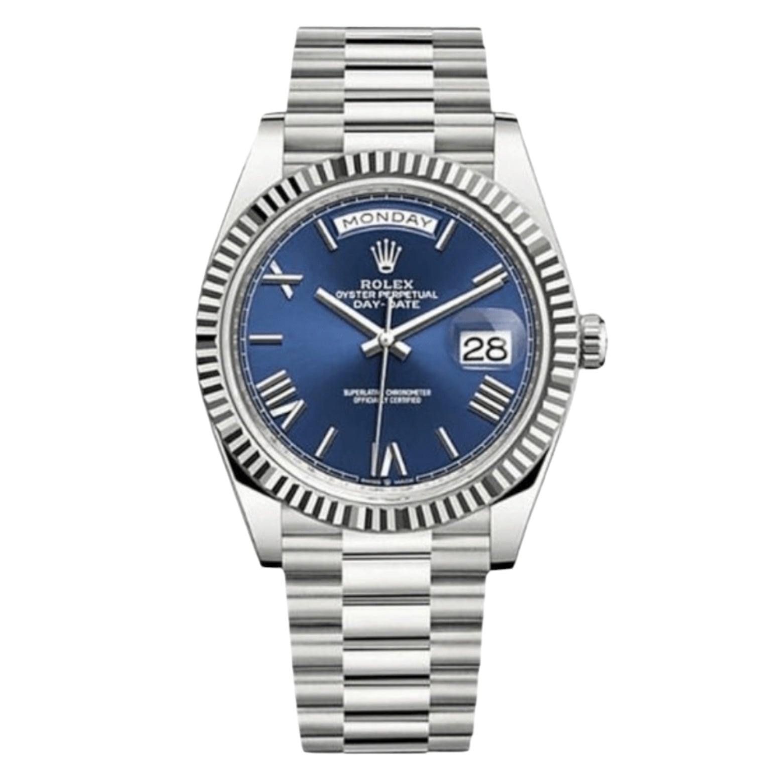 Rolex Day-Date Mirror Original Blue Dial with Silver Stainless Steel Strap