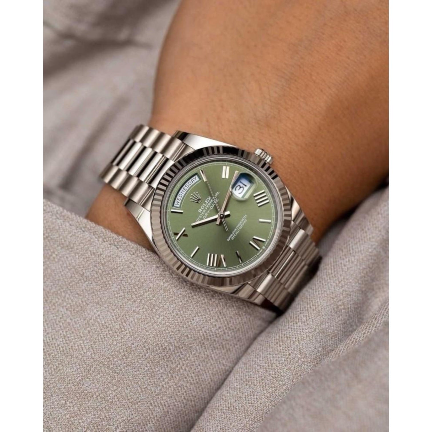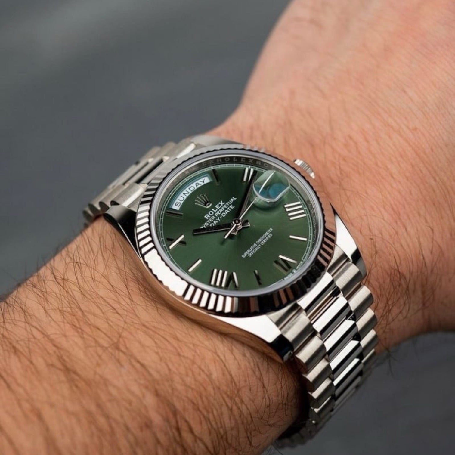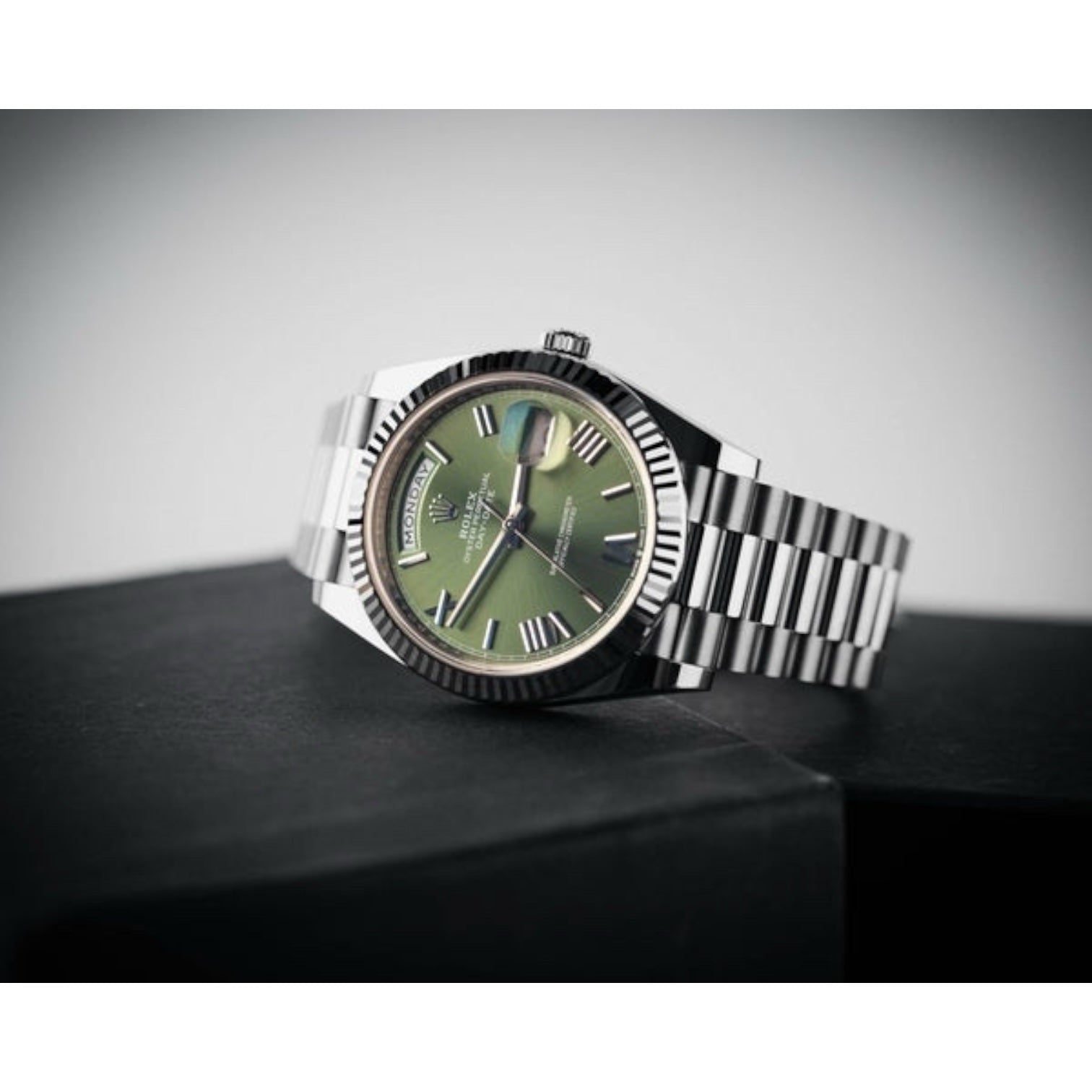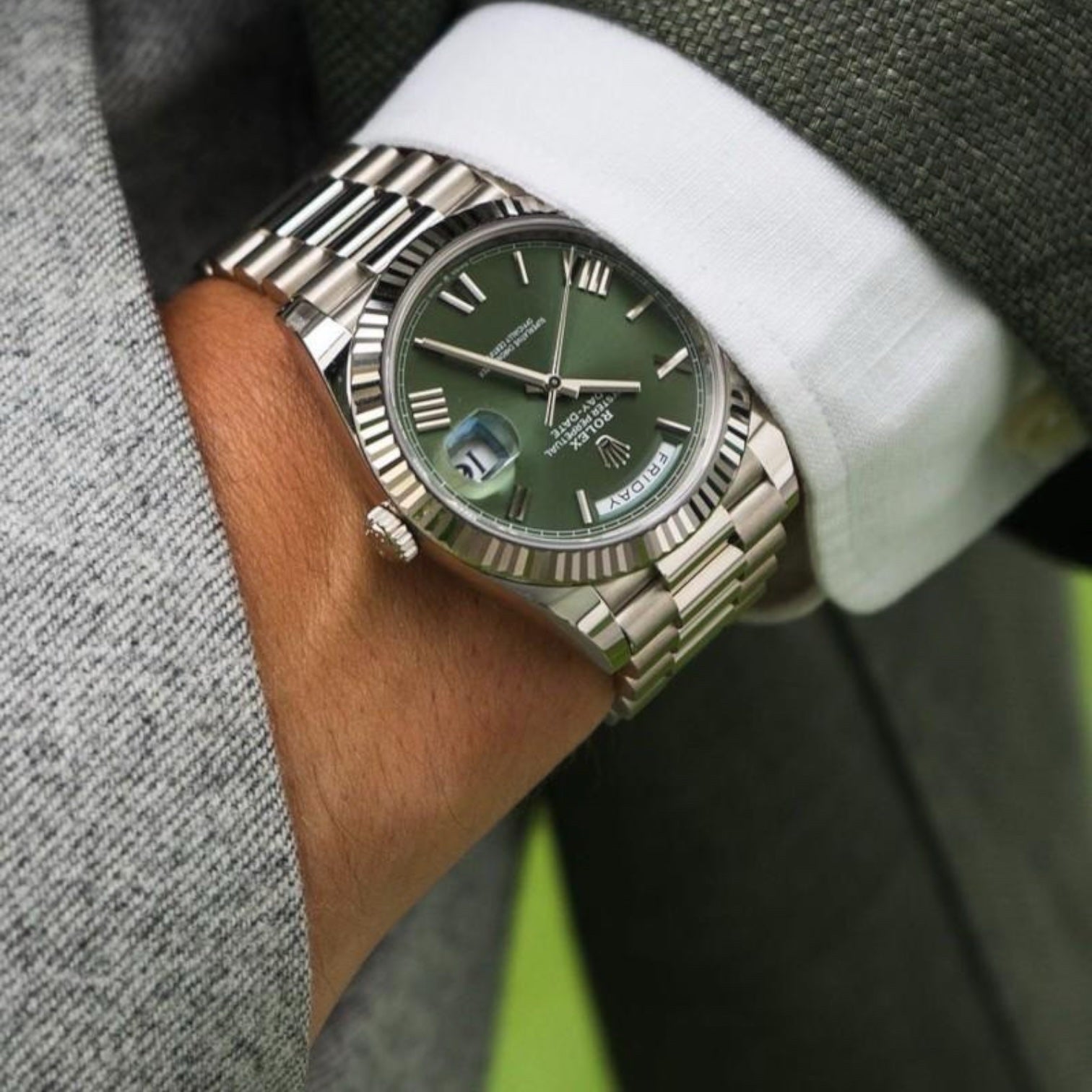 Rolex Day-Date Mirror Original Green Dial with Silver Stainless Steel Strap
