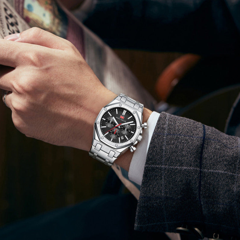 This Mini Focus Watch for men is both stylish and reliable. With its sleek design and precise timekeeping, it's the perfect accessory for any man on the go.