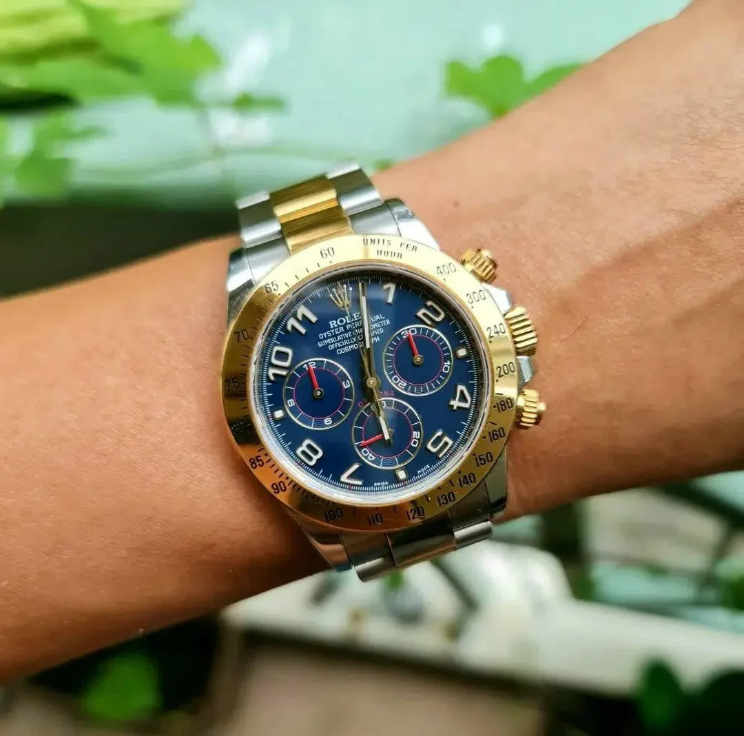 - Rolex Daytona Mirror Original Blue Dial Stainless Steel Band Silver x Gold