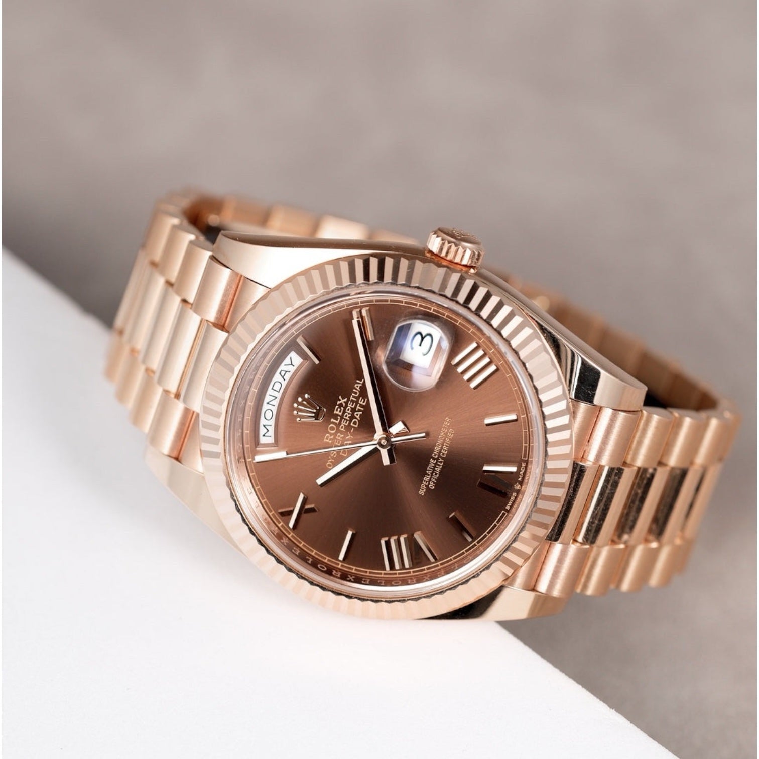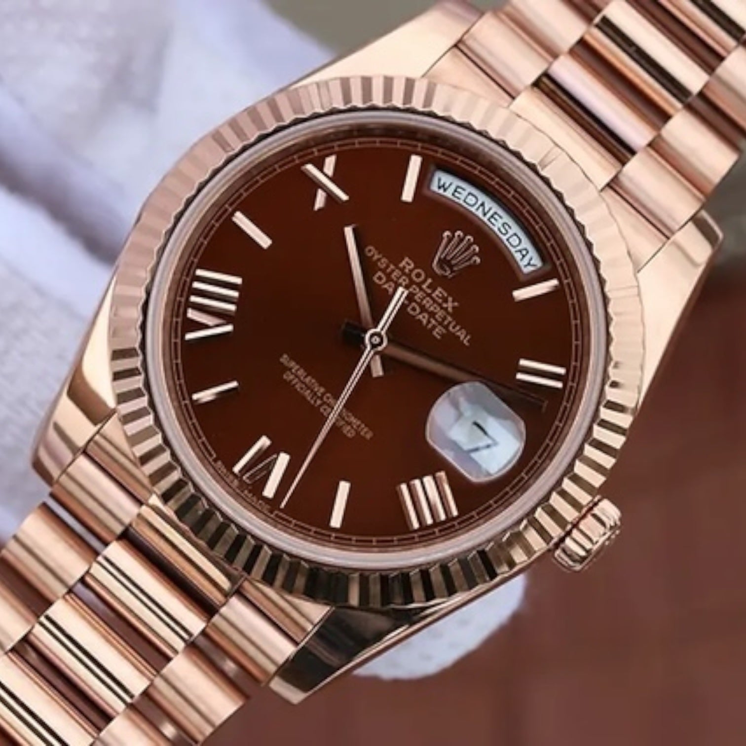 Rolex Day-Date Mirror Original Brown Dial with Copper Stainless Steel Band