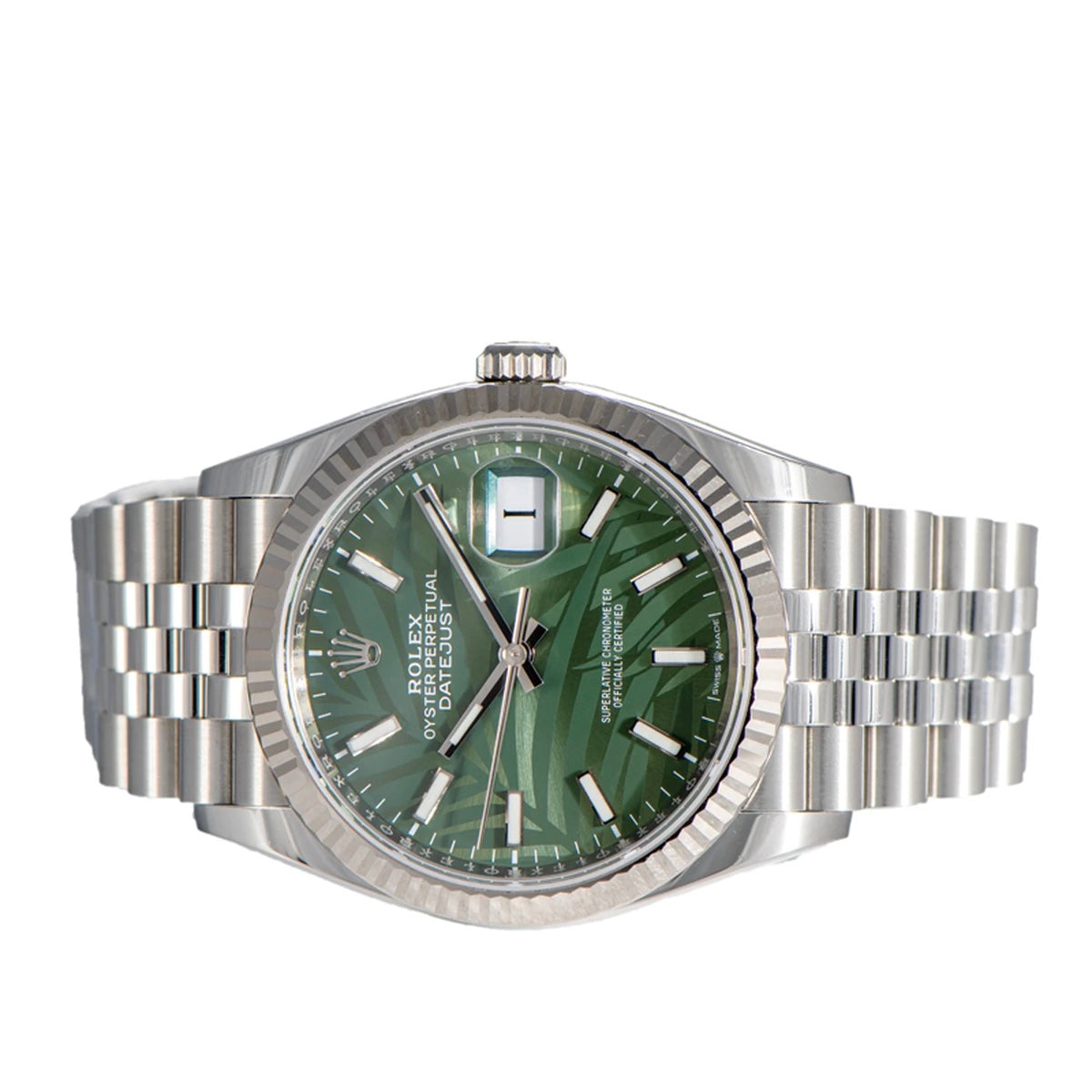 Rolex Datejust Mirror Original Men's Watch Green Dial with Silver Stainless Steel Band