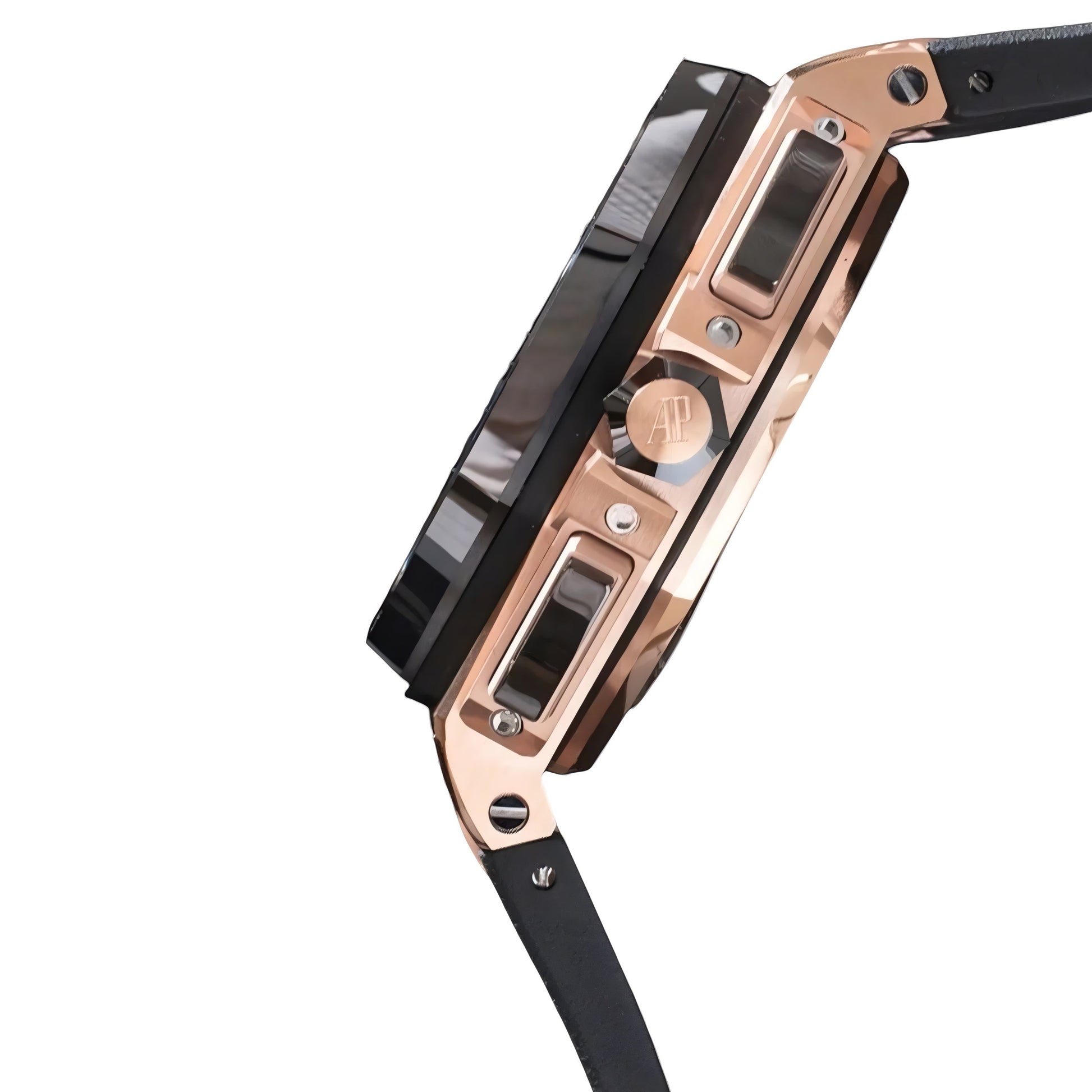 This Audemars Piguet men's watch features a durable black silicone strap, combining comfort with a modern look. Designed for everyday wear, it offers reliable timekeeping in a stylish and practical design.