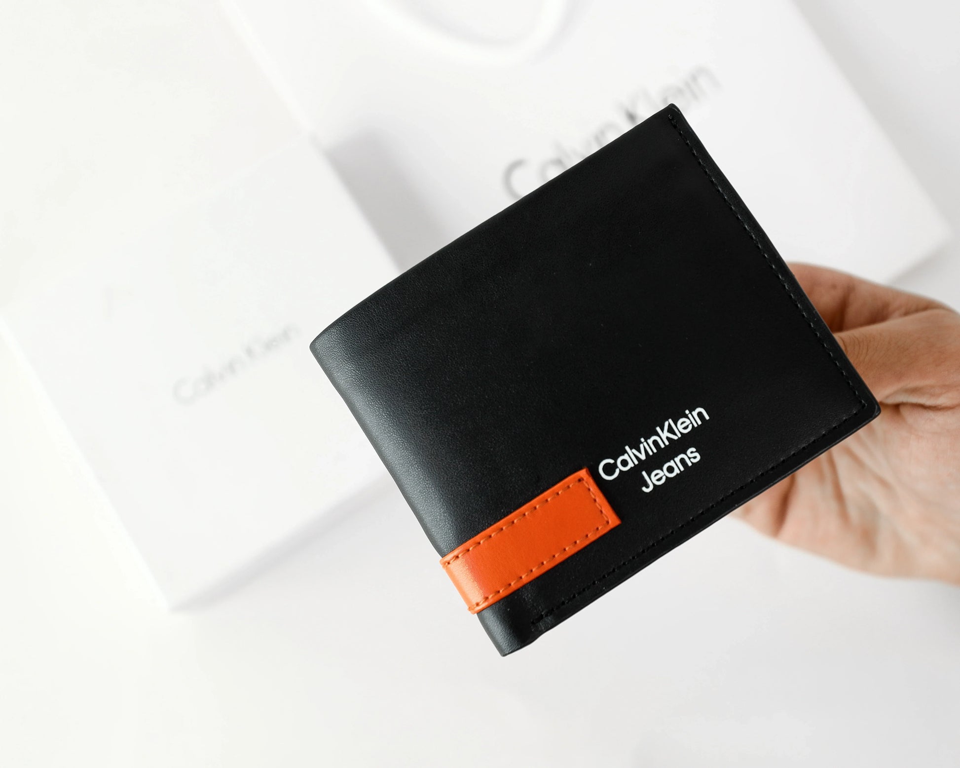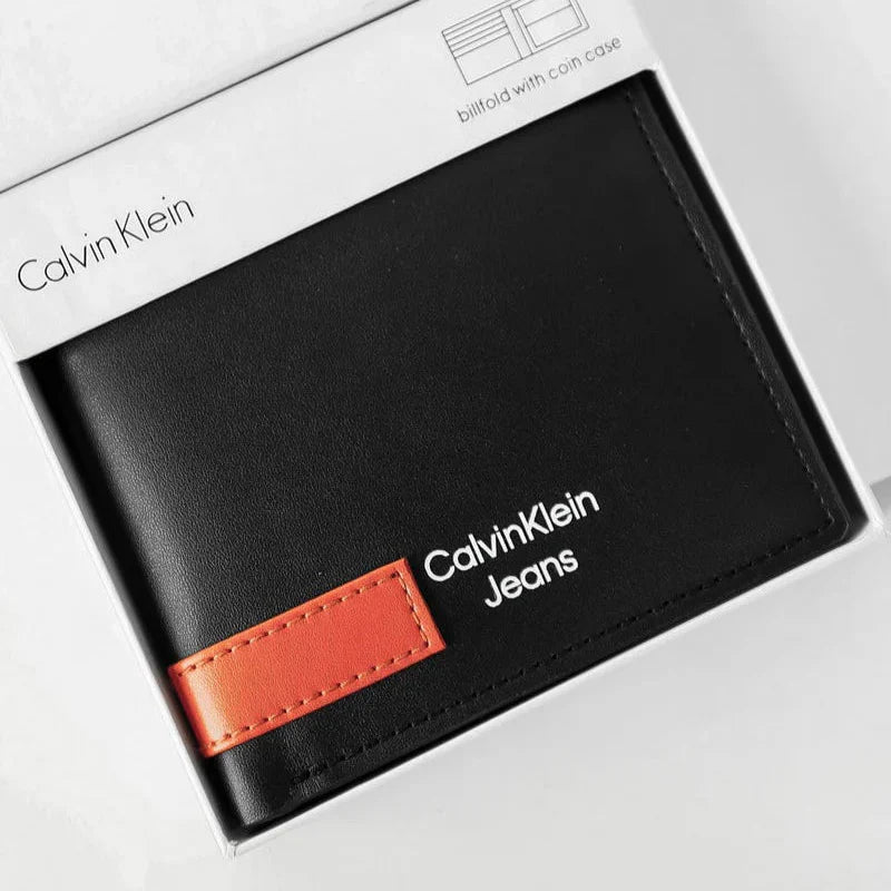 Shipping all Over Egypt within 2-3 days.The set includes a sleek bi-fold wallet and a compact cardholder, both crafted from high-quality black leather that exudes sophistication and durability. The bi-fold wallet features a subtle orange stripe detail, adding a touch of unexpected color and visual interest.