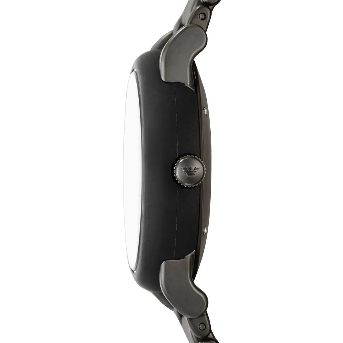 The Emporio Armani Luigi AR60010 watch for men features a sleek black dial and a matching black metal belt. Its classic design combines style and durability, making it a versatile accessory for everyday wear.