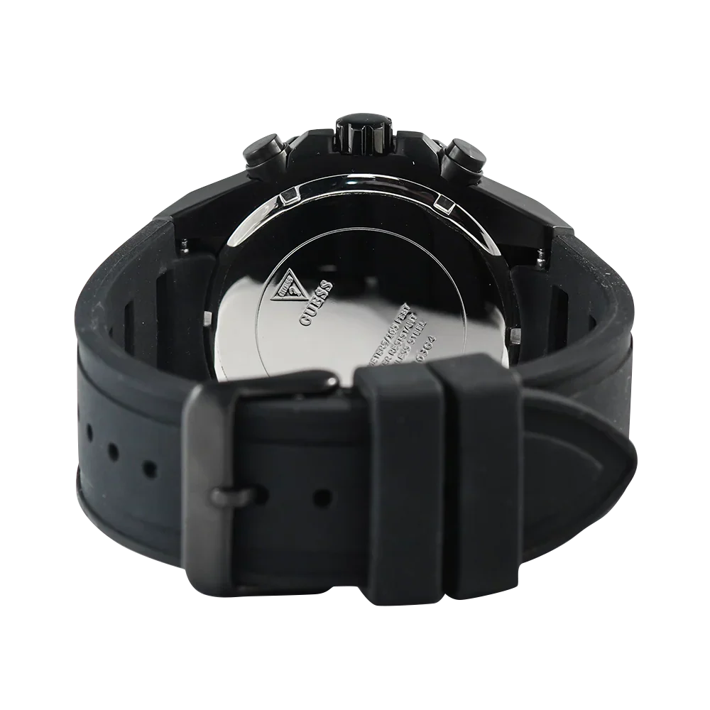 The Guess Watch For Men GW0263G4 features a sleek black dial paired with a comfortable black rubber strap. Designed for everyday wear, this watch combines style and practicality, making it a reliable accessory for any occasion.