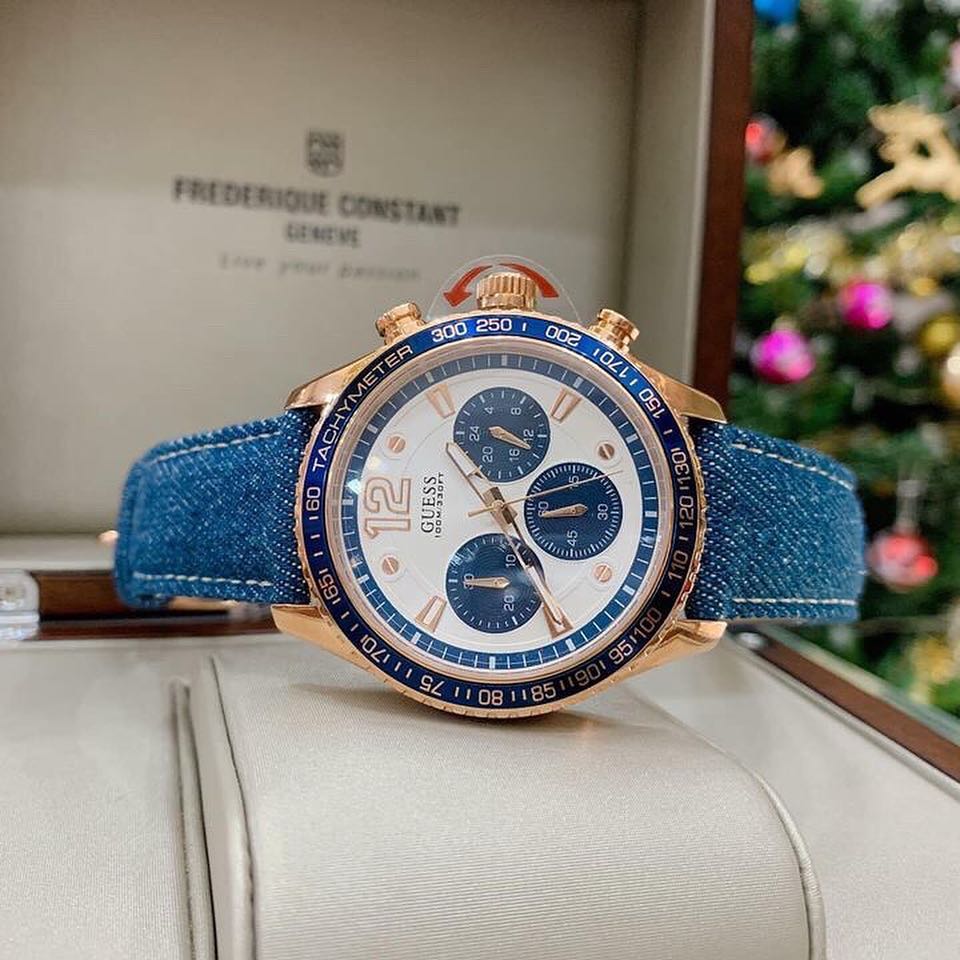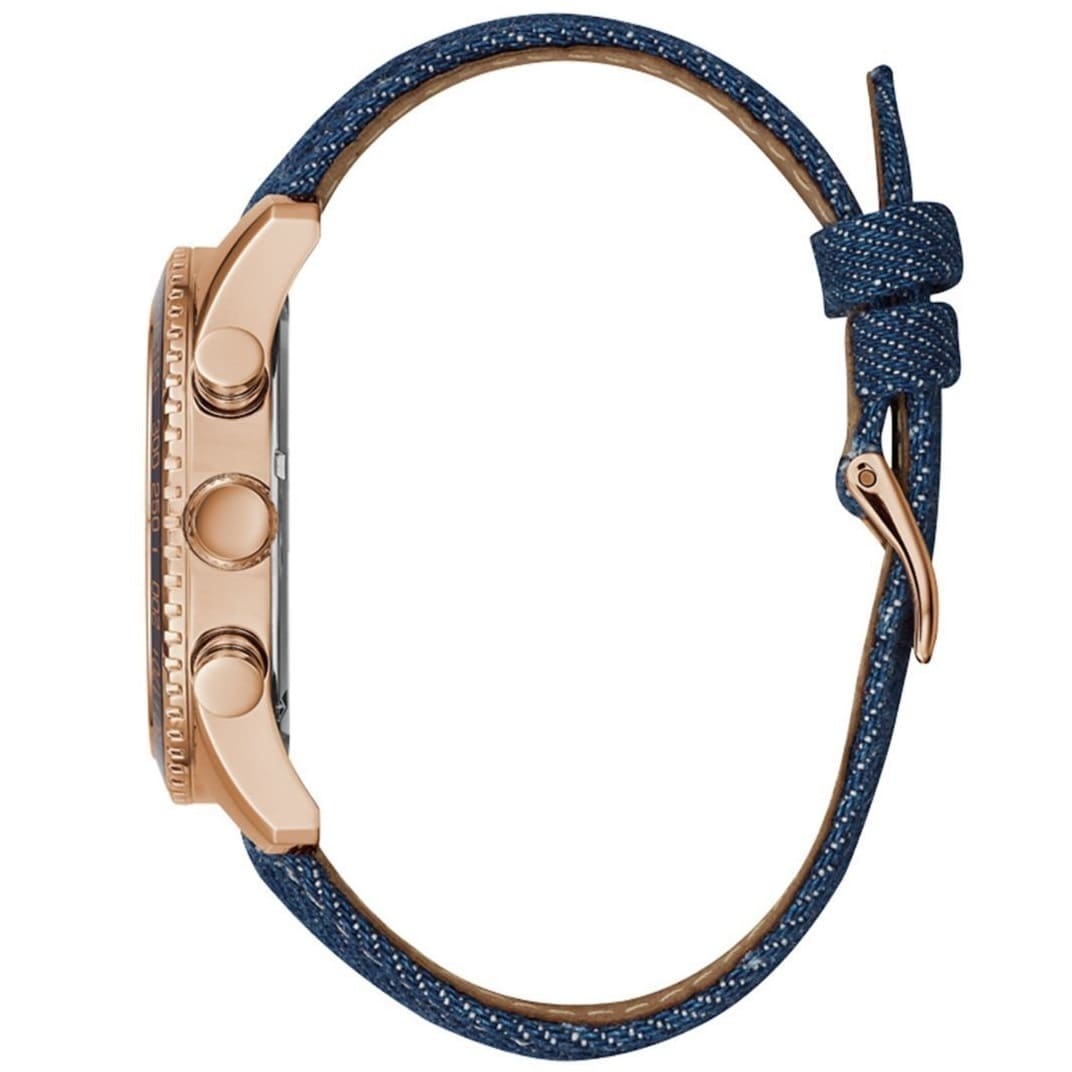 The Guess Watch for Men W0970G3 features a clean white dial that offers easy readability. It comes with a stylish blue jeans belt, adding a casual yet refined touch to your outfit. This watch combines practicality with everyday style, making it a great accessory for daily wear.