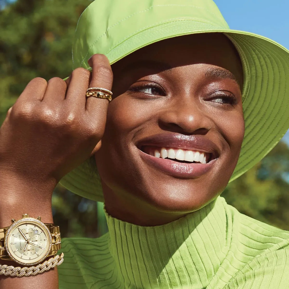 Michael Kors Ritz Chronograph Gold Dial Gold Steel Strap Watch For Women - MK6937