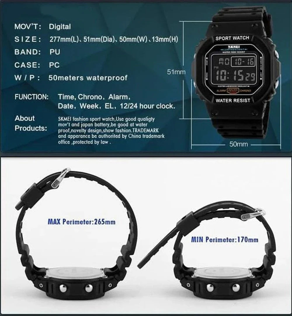 ساعة رياضية رقمية للرجال SKMEI 1134 بهيكل من الراتنج وسوار بلاستيك مطاطي