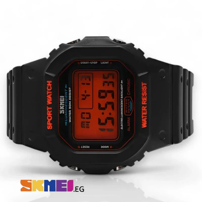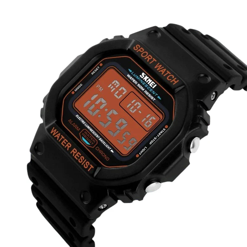 SKMEI 1134 ساعة رياضية للرجال متعددة الوظائف اسود بميناء أورنج