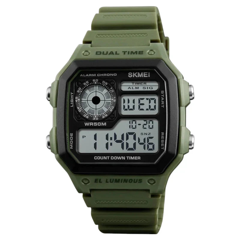 SKMEI 1299 ساعة رياضية رقمية أخضر زيتي