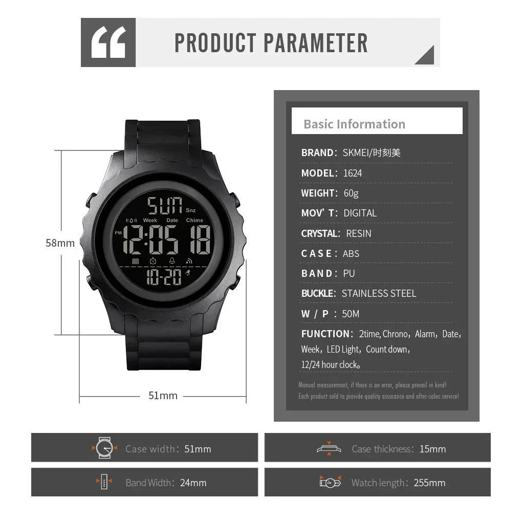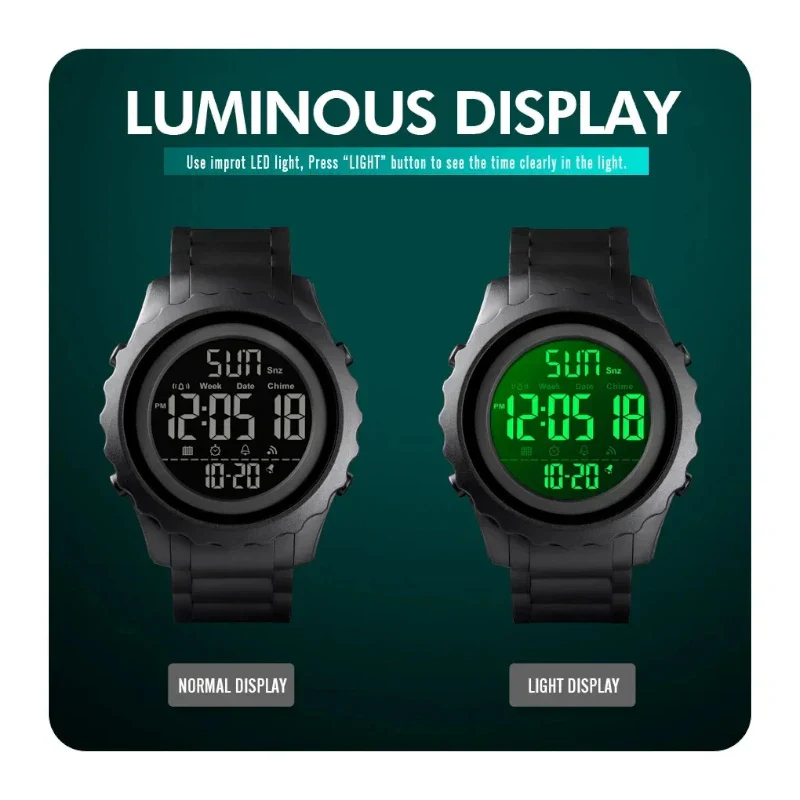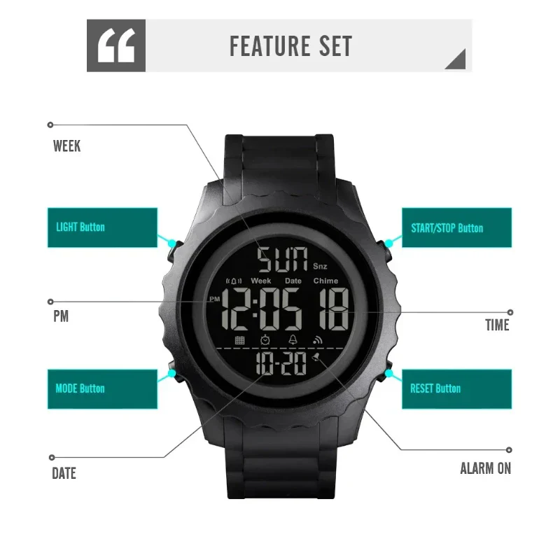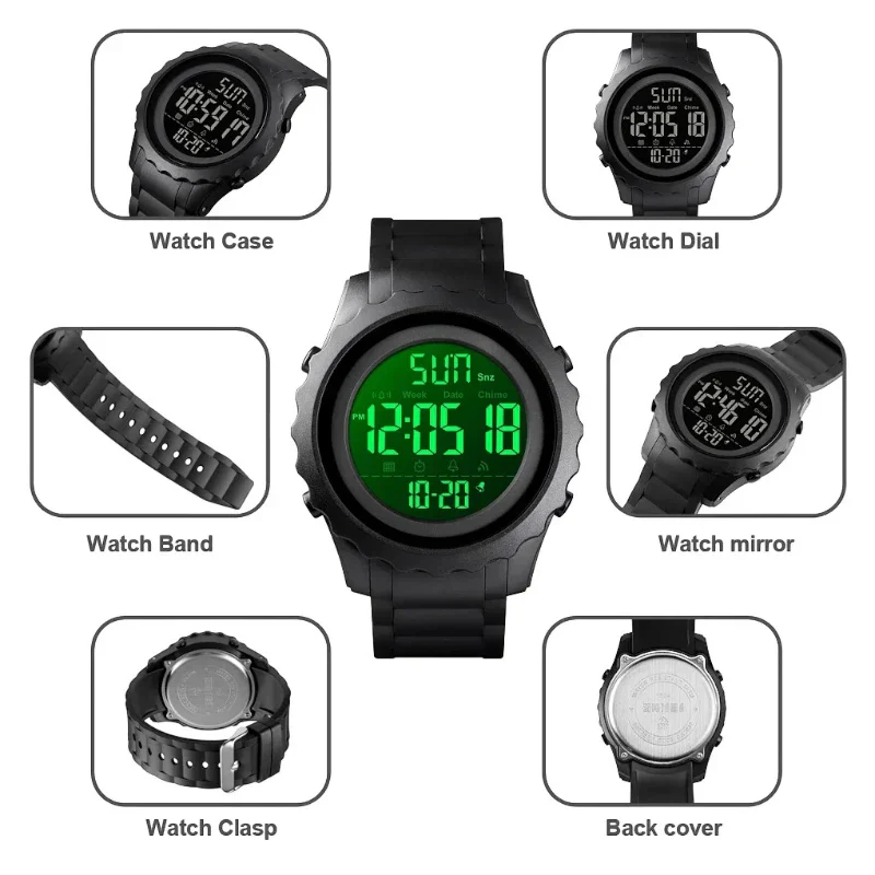 ابقَ على المسار الصحيح مع ساعة SKMEI 1624 الرياضية للمغامرات. تتميز بتصميم مموه أخضر، ومؤقت عد تنازلي، وشاشة LED، مما يجعلها مثالية لعشاق الأنشطة الخارجية. بفضل بنيتها المتينة ودقتها في تحديد الوقت، يمكنك خوض أي مغامرة بثقة.