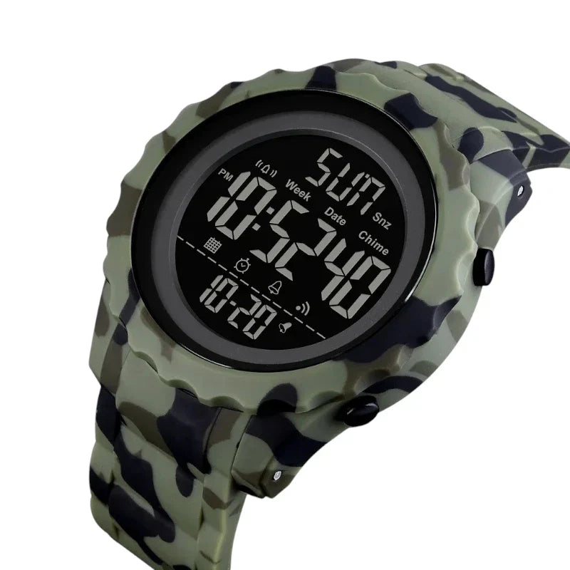 ساعة SKMEI 1624 رياضية متعددة الوظائف - أخضر جيشي مموه، ستوب ووتش LED مقاومة للماء
