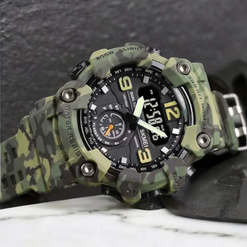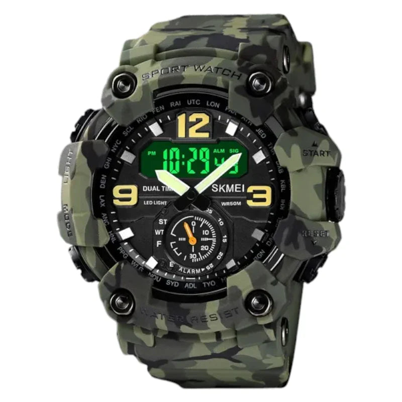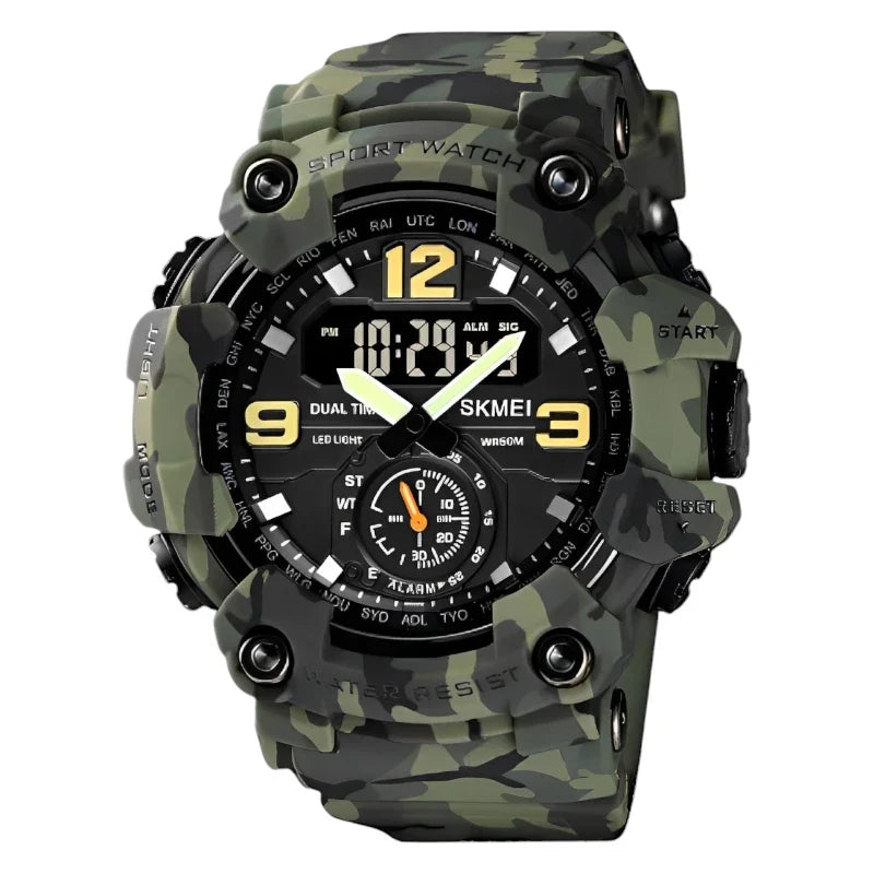 SKMEI 1637 ساعة رياضية جيشي مموهة رقمي مع عقارب 3 توقيتات
