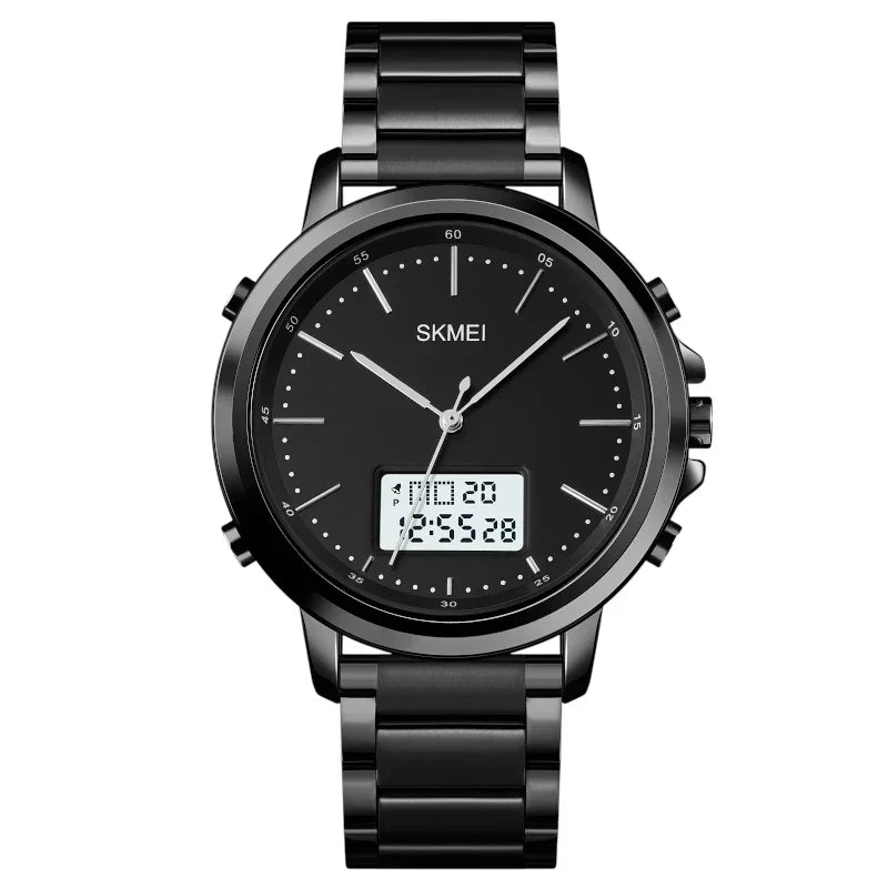 ساعة سكمي 1652 أسود بشاشة مزدوجة رقمي مع عقارب ستانلس ستيل