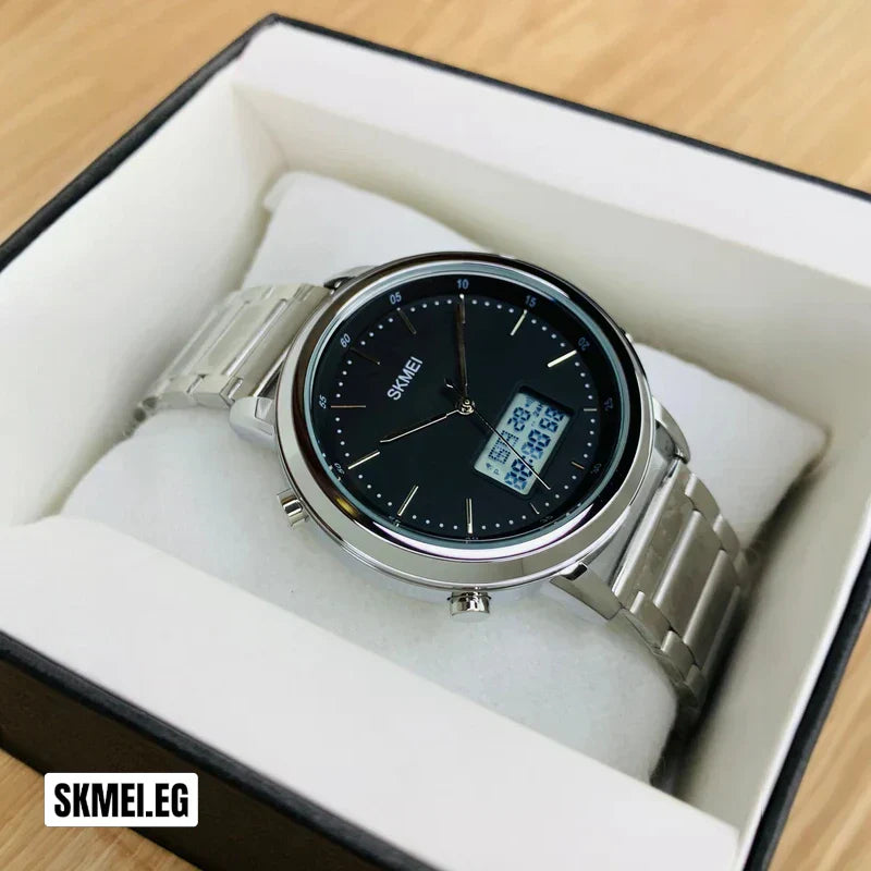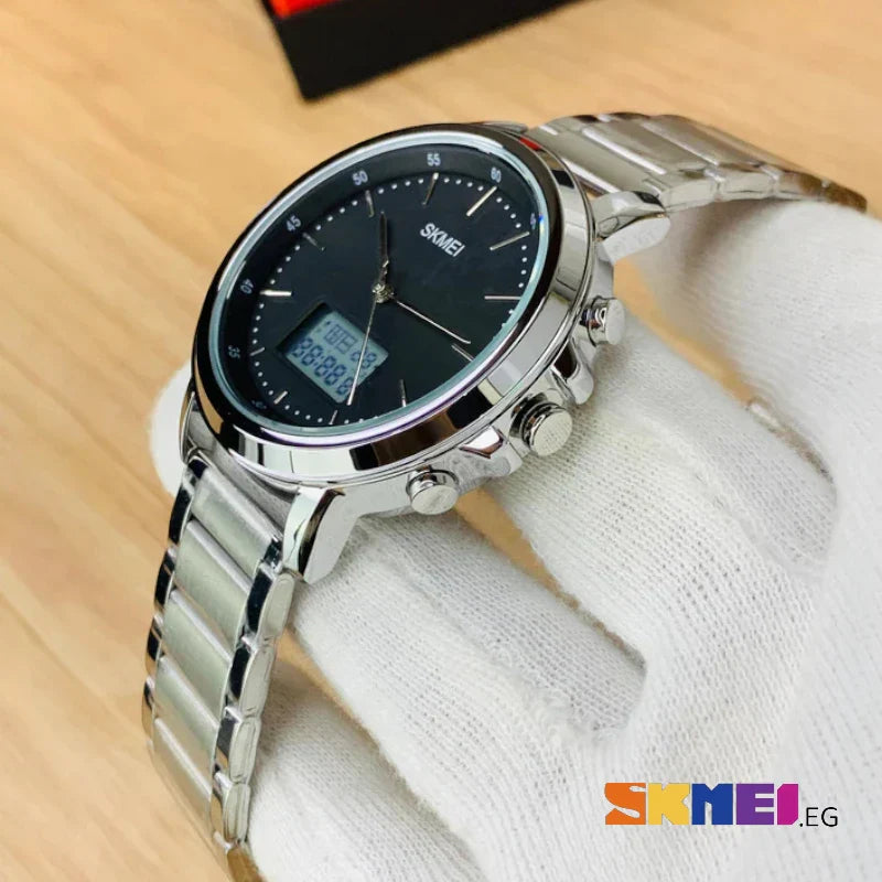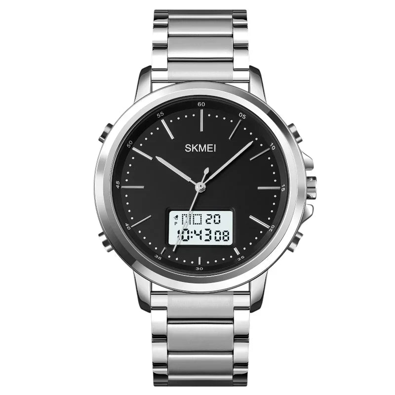 ساعة سكمي 1652 بشاشة مزدوجة ستانلس ستيل فضي وشاشة رقمية