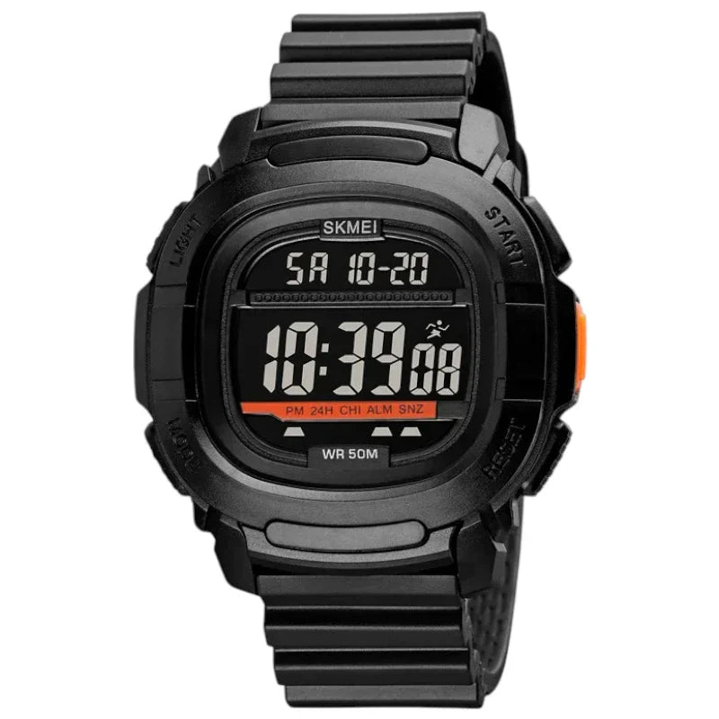SKMEI 1657 ساعة رياضية رقمية مربعة متعددة الوظائف مع عداد للوقت مقاومة للماء بلون اسود