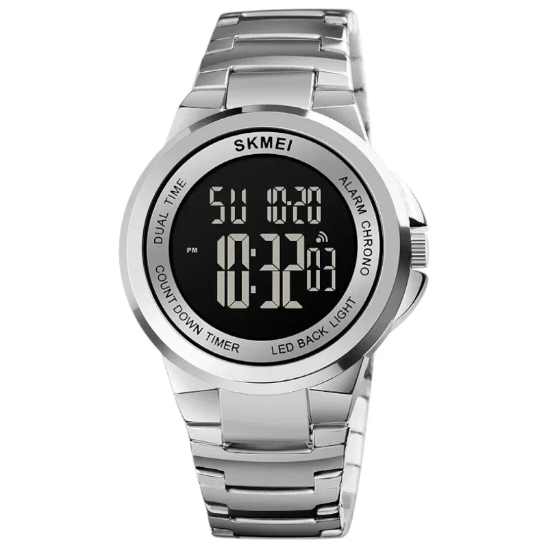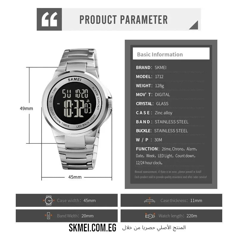 ساعة سكمي 1712 رقمية عصرية ستانلس ستيل فضي بشاشة داكنة