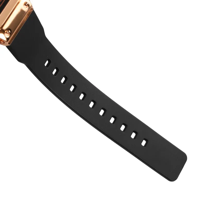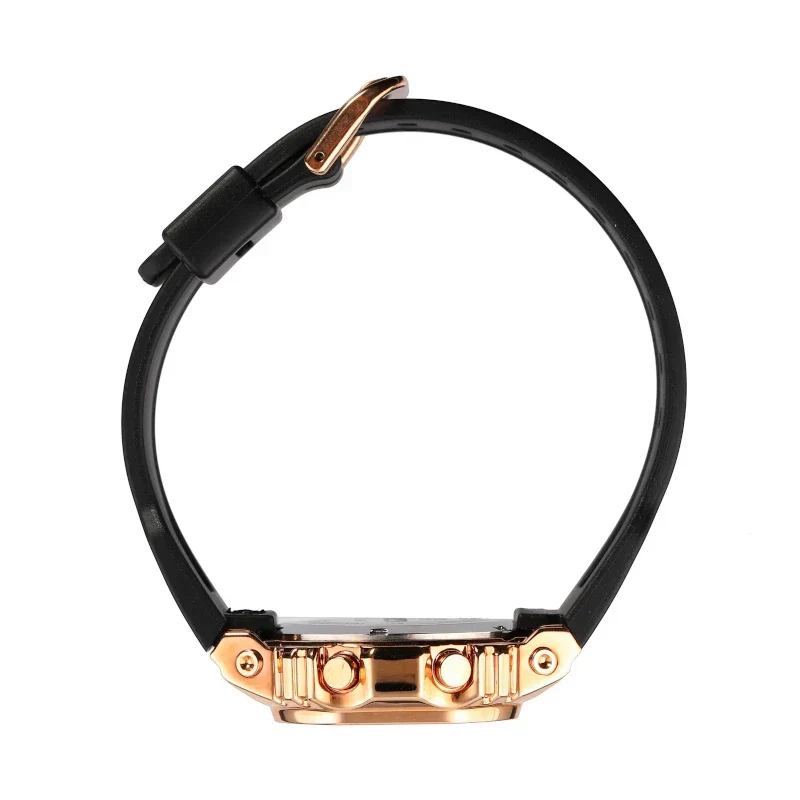 - هيكل فاخر باللون الذهبي: جسم الساعة مصنوع بلمسة نهائية عالية الجودة باللون الذهبي لمظهر راقٍ وفائق.