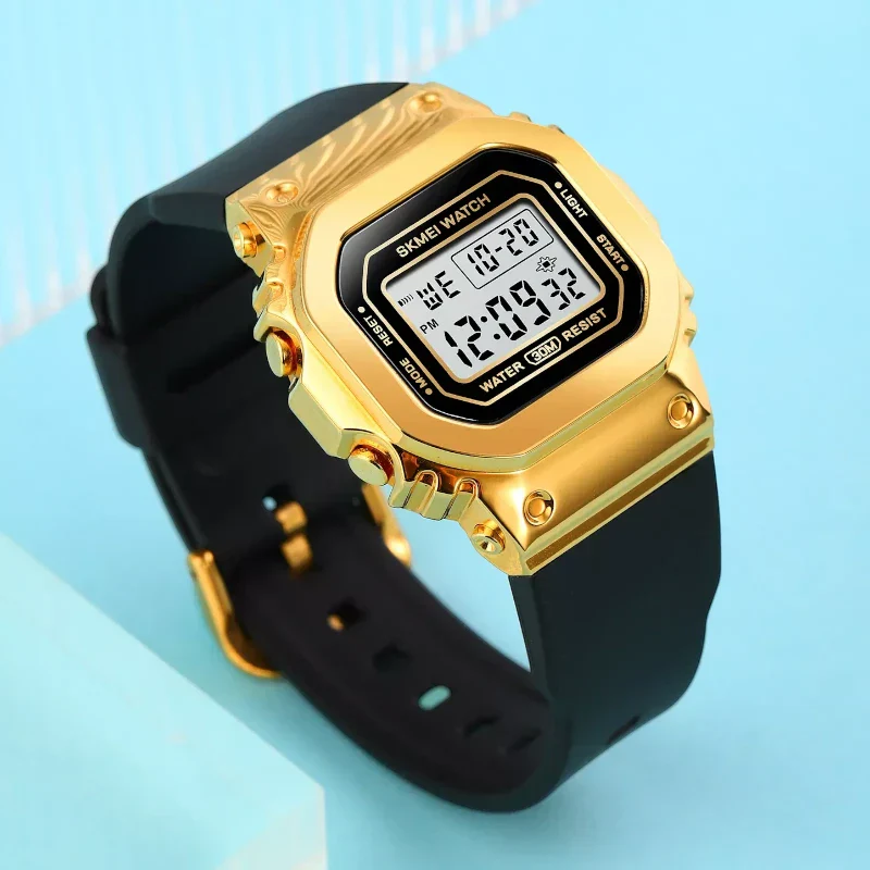 SKMEI 1796 ساعة رياضية ستيل مطاط ذهبي أسود