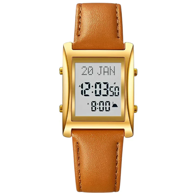 SKMEI 1815 ساعة مواقيت الصلاة الفاخرة ذهبي مع سوار جلد بني