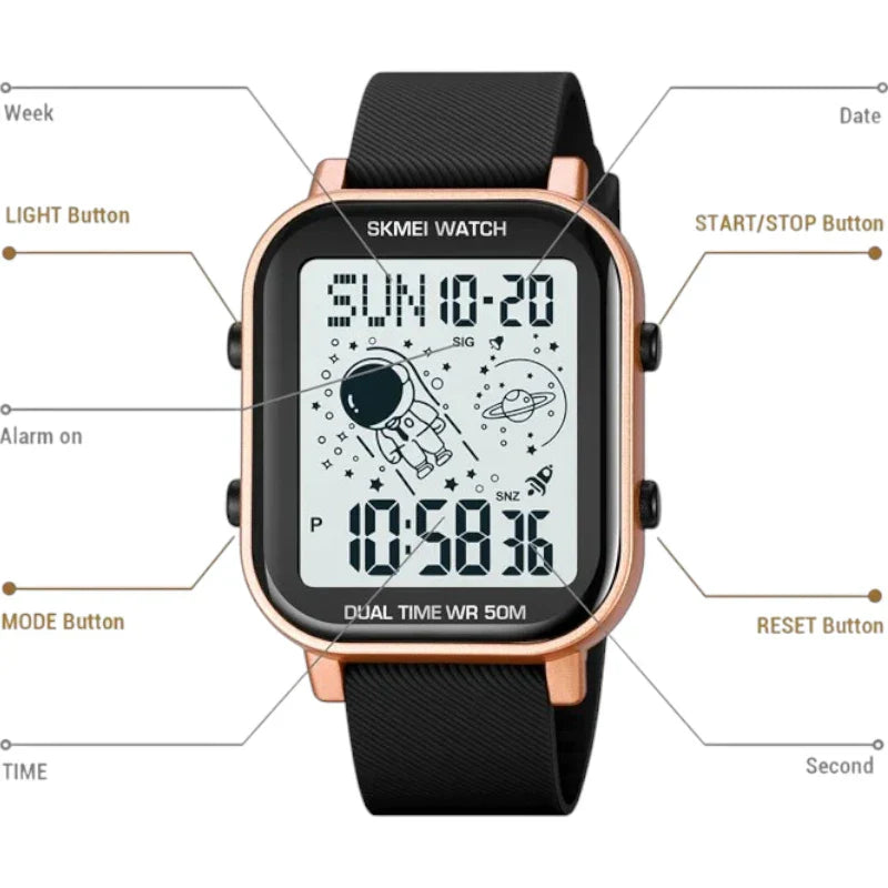 ساعة سكيمي 1971 رياضية متعددة الوظائف منبه تقويم بإضاءة LED رقمية لون ذهبي سوار اسود