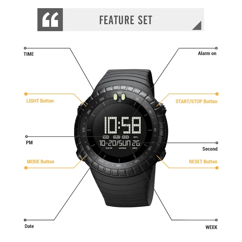 ابق على المسار الصحيح وعلى الموضة مع ساعة SKMEI 1992 الرياضية الخارجية متعددة الوظائف. صُممت هذه الساعة للرجل العصري، وهي مقاومة للماء ومضيئة، مما يجعلها مثالية للأنشطة الخارجية. بفضل تصميمه الأسود الأنيق، لن تضطر أبدًا إلى التضحية بالأناقة من أجل الأداء الوظيفي.
