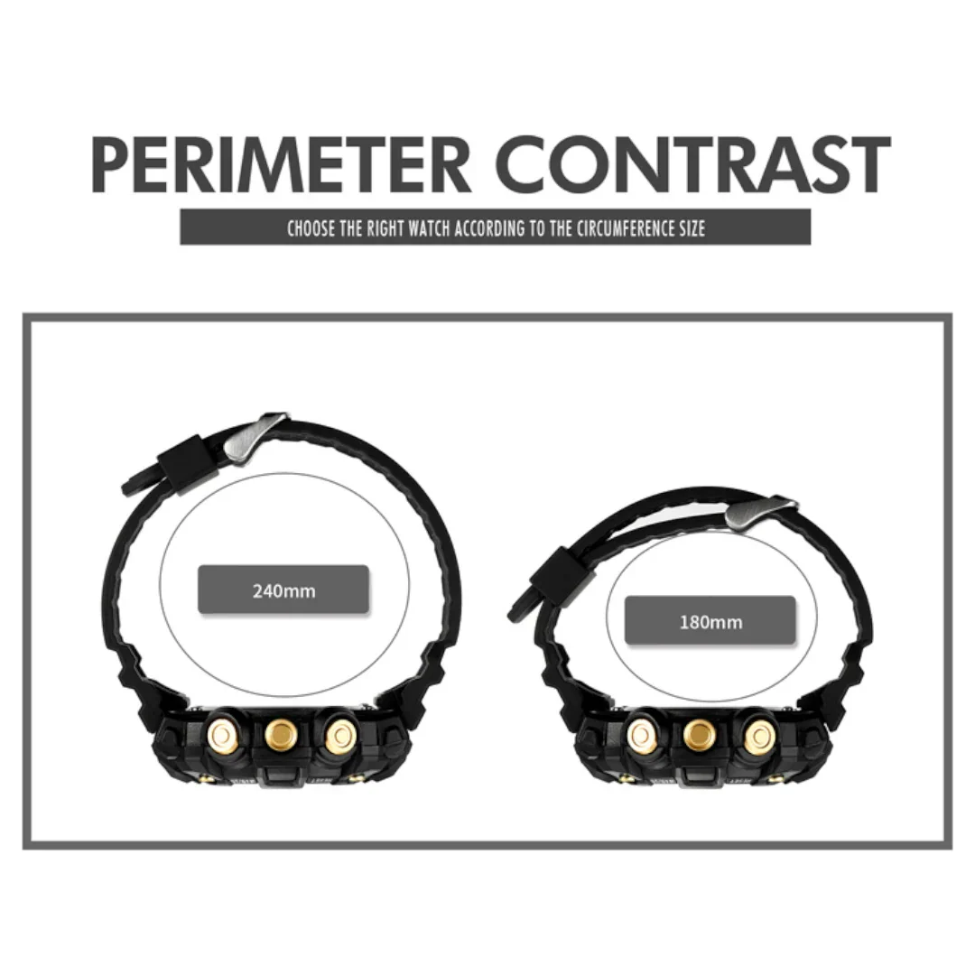 نقدم لكم ساعة سكمي 2018، وهي قطعة تتميز بتصميمها العصري والجريء الذي يجمع بين الخطوط الحادة والمظهر المستقبلي. يأتي هيكل الساعة باللون الأسود القوي، ويكتمل بشاشة ذات خلفية بيضاء عالية الوضوح، مما يخلق تباينًا رائعًا ويسهل قراءة الوقت والمعلومات بلمحة واحدة.