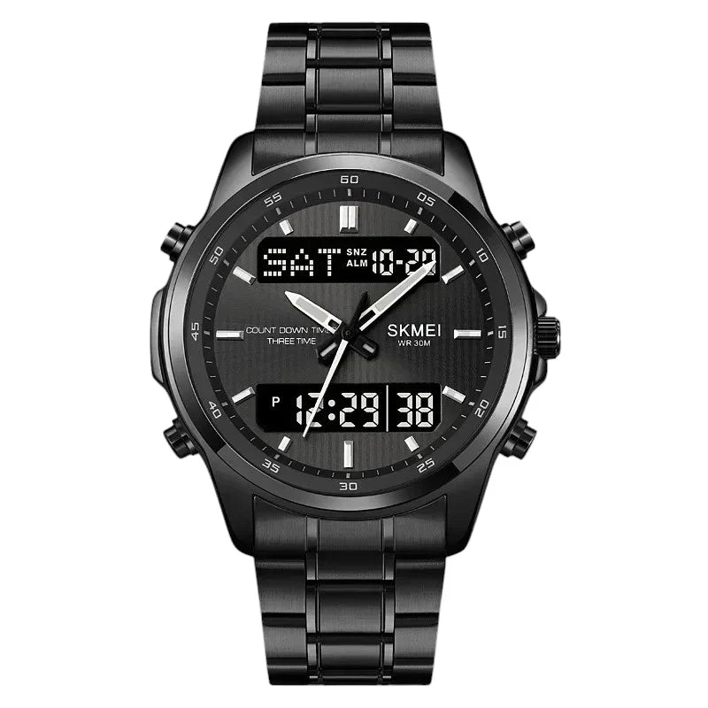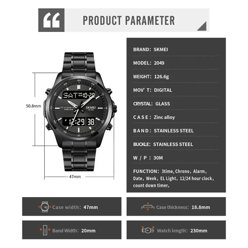 SKMEI 2049 ساعة رياضية فاخرة ستانلس ستيل أسود بالكامل