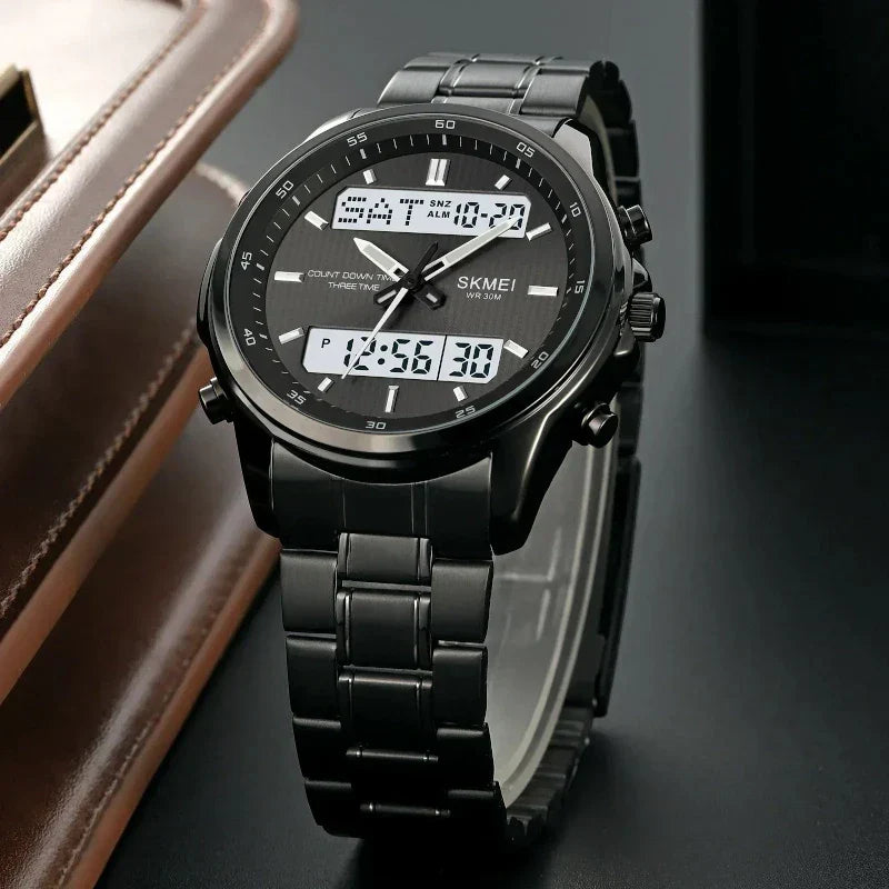 SKMEI 2049 ساعة سكمي الفاخرة ستانلس ستيل أسود ومينا أبيض