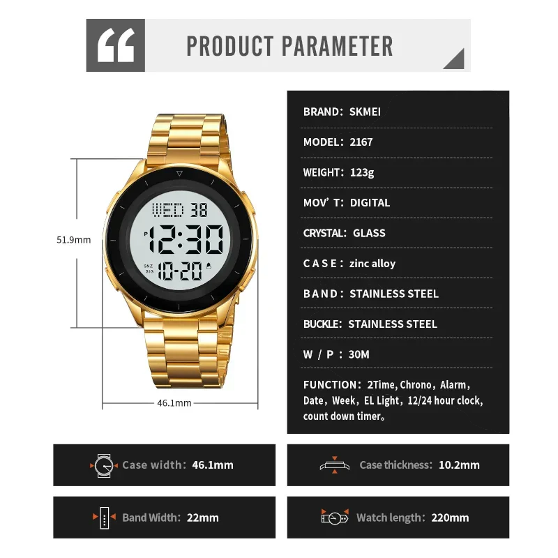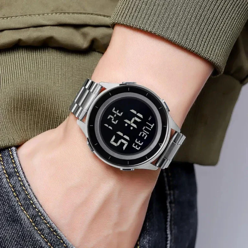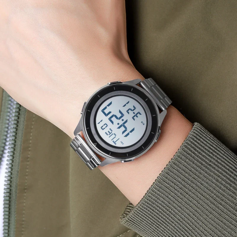 SKMEI 2167 ساعة رقمية عصرية بلون فضي من الستيل