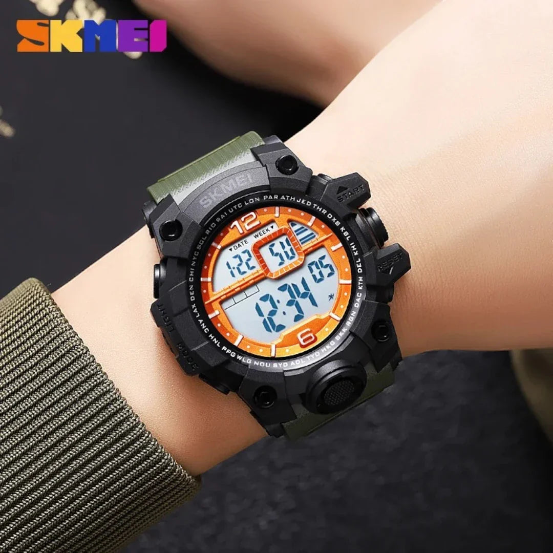 SKMEI 2245 ساعة رياضية رقمية مع ميناء بحواف برتقالي