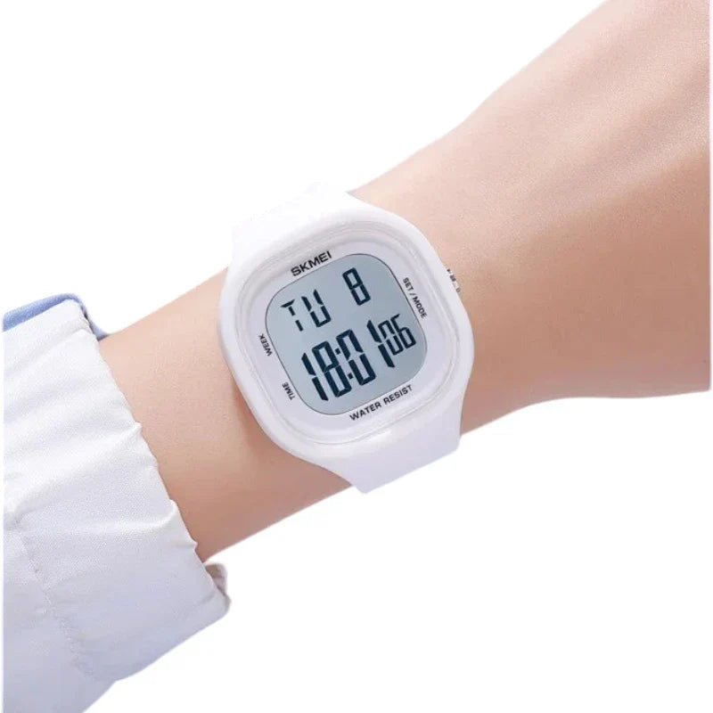 ساعة SKMEI 2290 رياضية للجنسين رقمية مقاومة للماء متعددة الوظائف ابيض سيليكون
