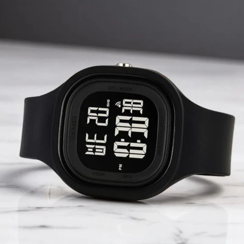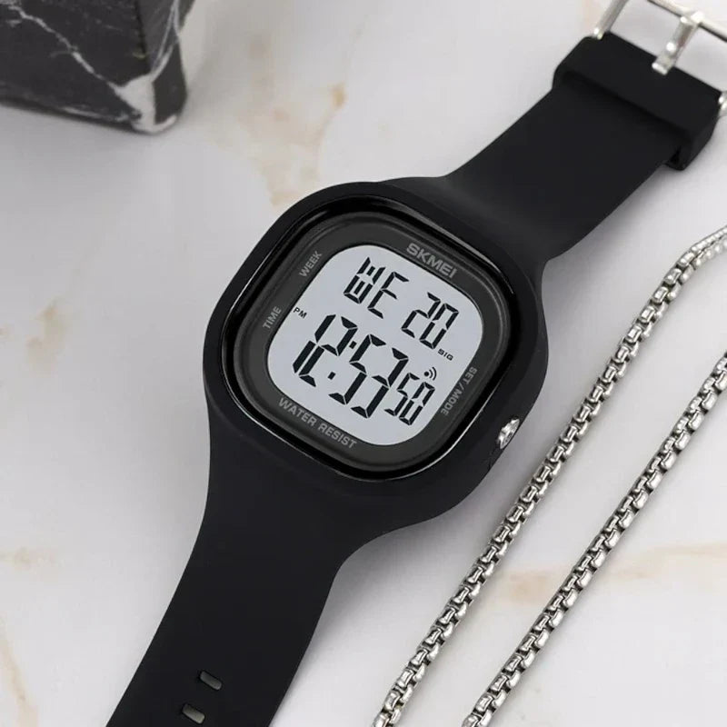 ساعة SKMEI 2290 رياضية رقمية مقاومة للماء بلون اسود داكن للجنسين بسوار مطاطي