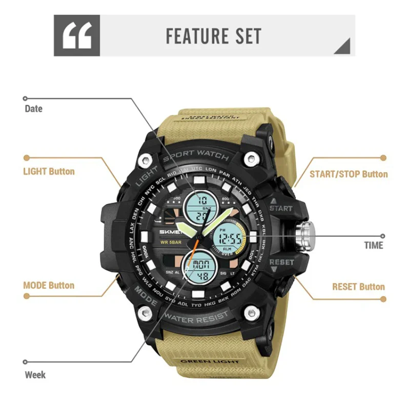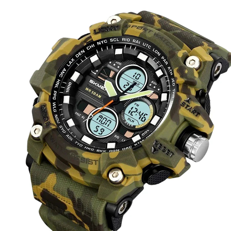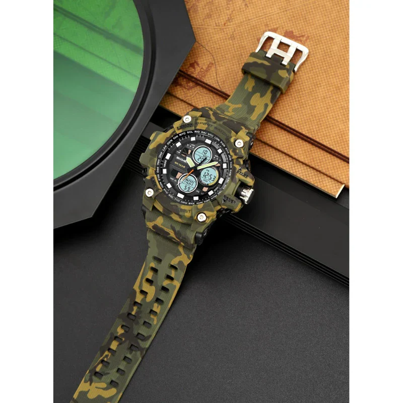 ساعة SKMEI 2349 رياضية متعددة الوظائف رقمي مع عقارب تدعم 3 اوقات, منبه, تقويم, ساعة إيقاف, مؤقت تنازلي اخضر جيشي مموه